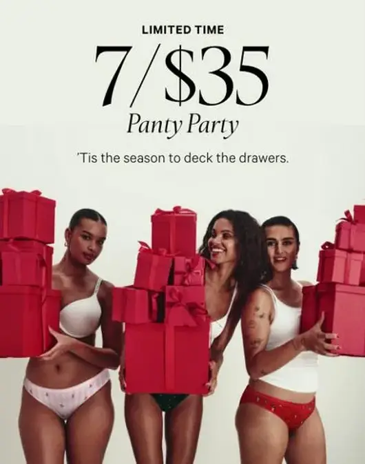 Get it now! Shop in store and get 7 panties for $35.
