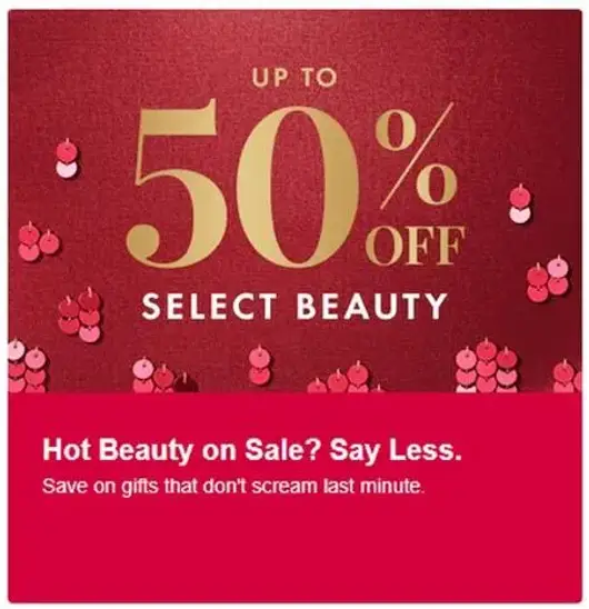 Hurry in and get up to 50% off select beauty in store for a limited time.