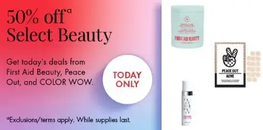Stop by and take 50% off on select beauty in store for a limited time.